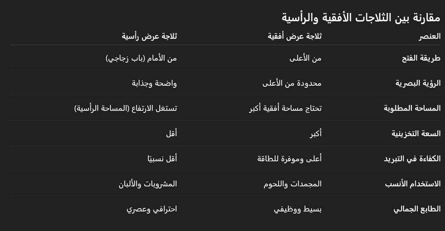 ويبقى السؤال الأهم: هل الأفضل ثلاجة عرض أفقية أم رأسية؟
