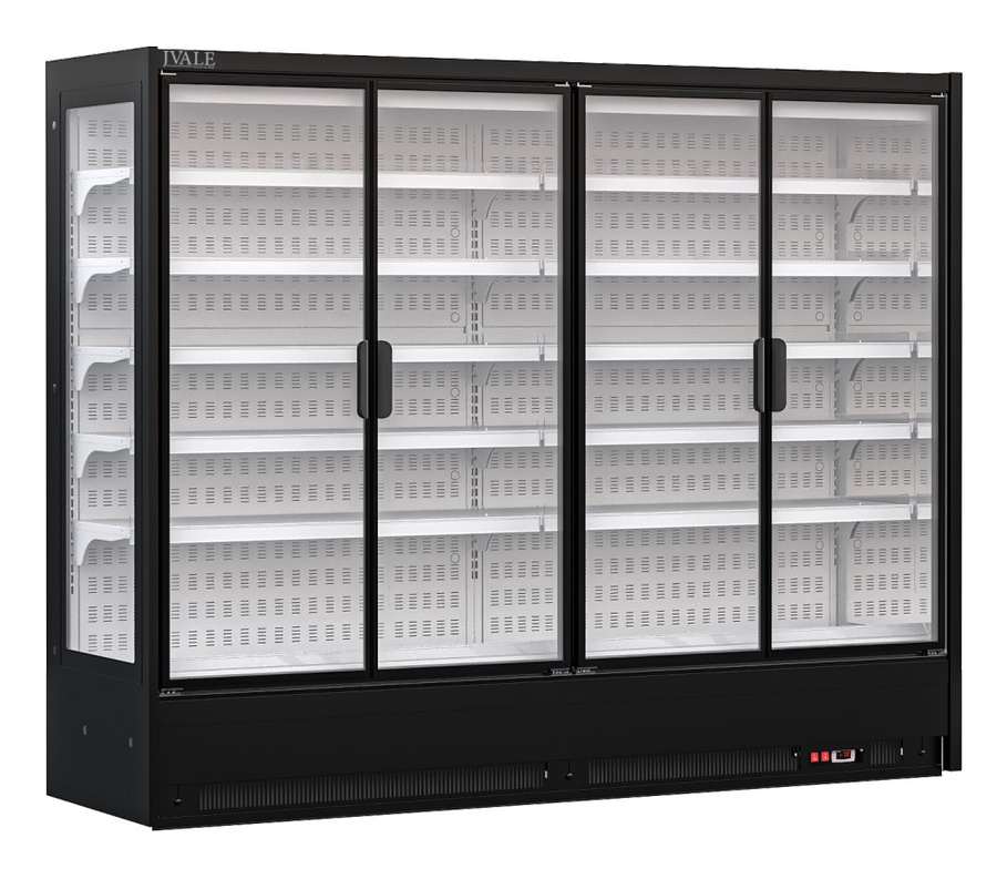 - نوع الثلاجة: رأسية مغلقة بأربع أبواب زجاجية منزلقة
