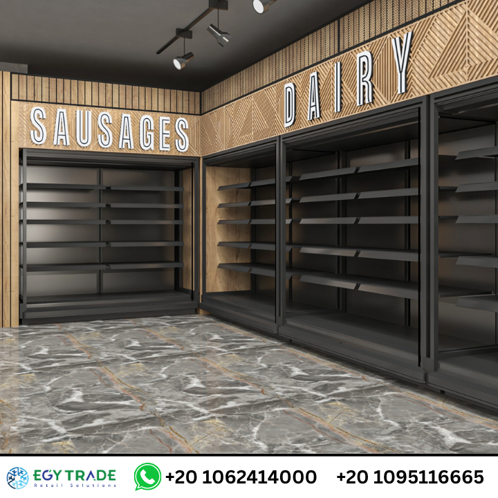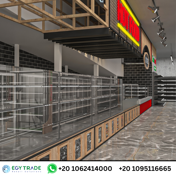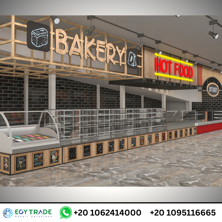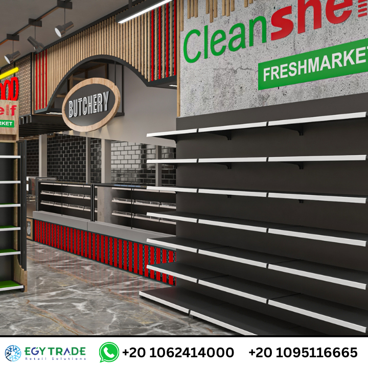 مشروع CleanShelf Kenya لتجهيز سوبر ماركت كامل بتصميم احترافي يشمل المخبوزات، الأطعمة الساخنة، الجزارة، رفوف البقالة، وثلاجات العرض بجودة عالمية