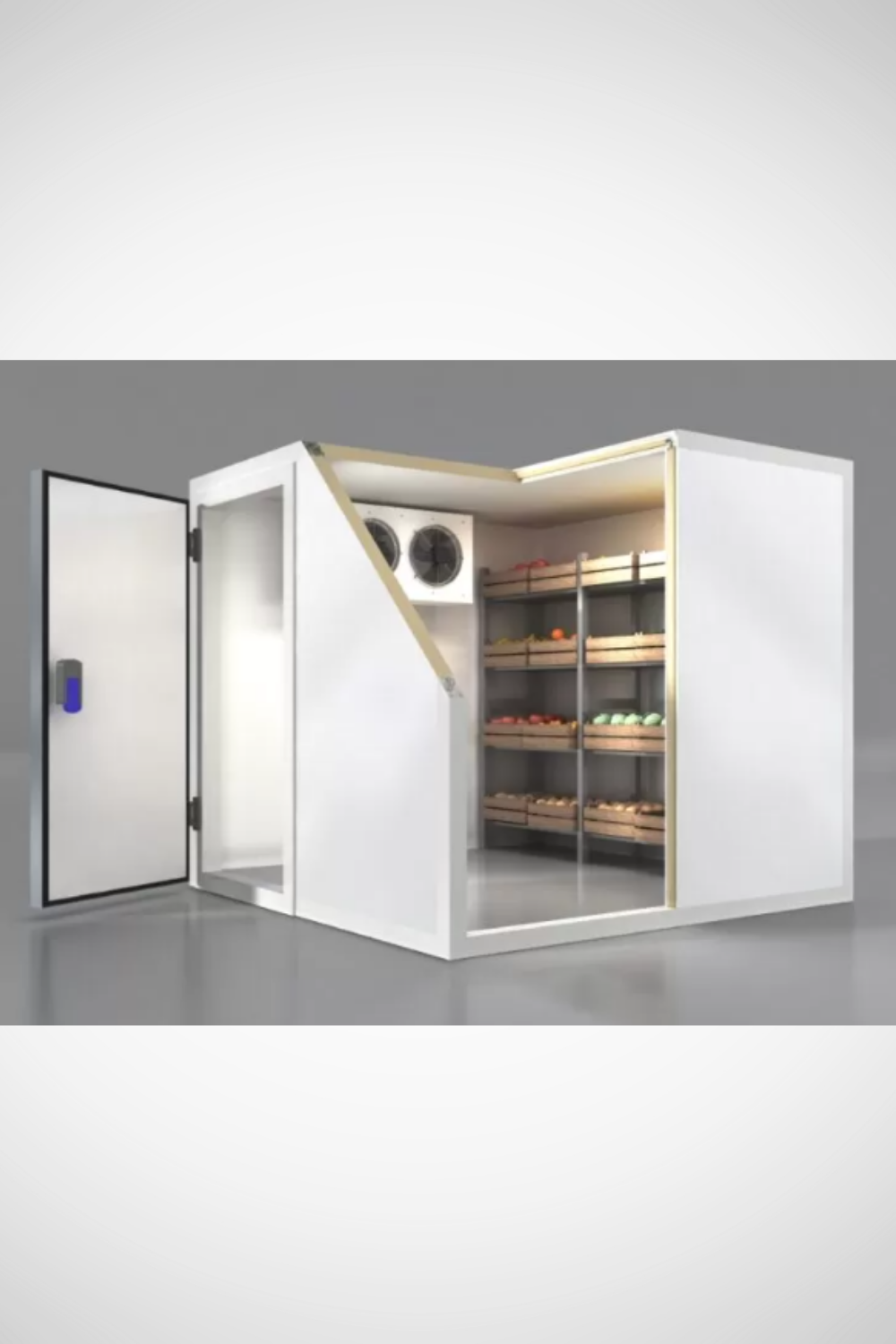 تتميز الغرفة بنظام تبريد متكامل مزود بمراوح هوائية مزدوجة لتوزيع الهواء البارد بالتساوي داخل المساحة، مما يضمن حفظ المنتجات بجودة عالية ولفترات طويلة.
