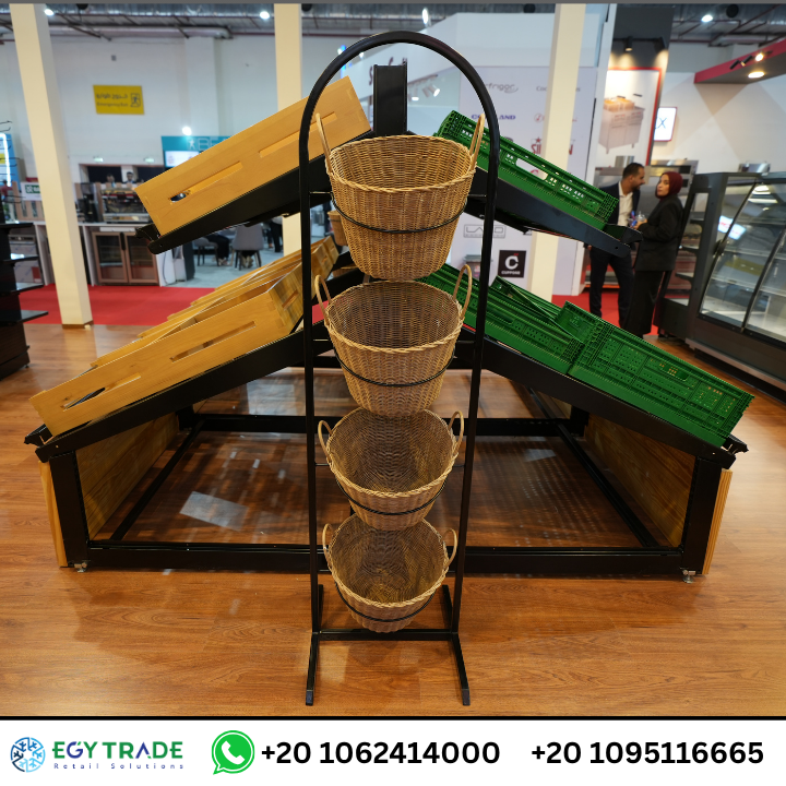يمثل حامل سلال الخوص العمودي أحد أهم حلول العرض داخل تجهيزات سوبر ماركت، حيث يوفّر طريقة منظمة وجذابة لعرض الخضروات والفواكه والمنتجات الصغيرة. يساعد هذا النوع من الوحدات على تحسين التدفق البصري داخل مشاريع السوبر ماركت، مع جاهزية عالية للتشغيل اليومي من مورد تجهيزات سوبر ماركت متخصص، مع توفر المنتج للتوريد التجاري.