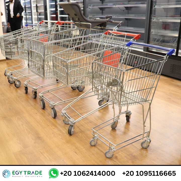 الصور توضح مجموعة من عربات السوبرماركت عالية الجودة:
