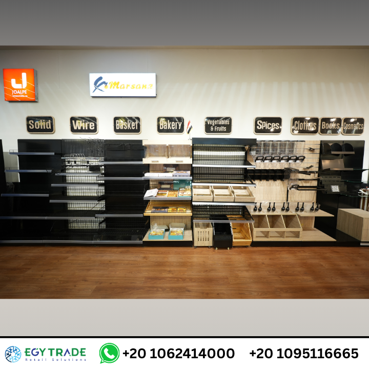 الرفوف في المشروع تعتمد على نظام Hybrid Shelving يجمع بين: