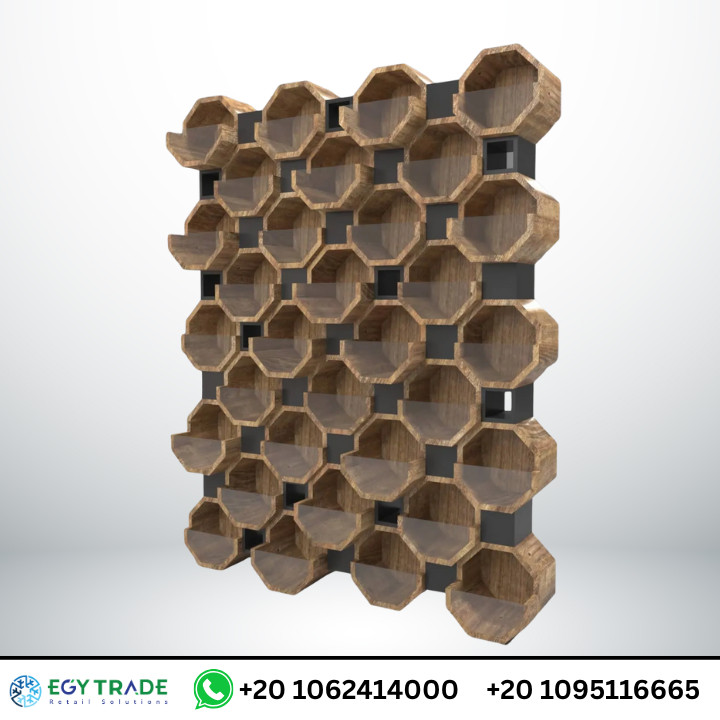 هذه الوحدة الخشبية بتصميم خلية النحل تعتبر من أحدث حلول التخزين والعرض داخل المتاجر، حيث تقدم شكلًا جذابًا وتنظيمًا عاليًا للمنتجات الجافة.
