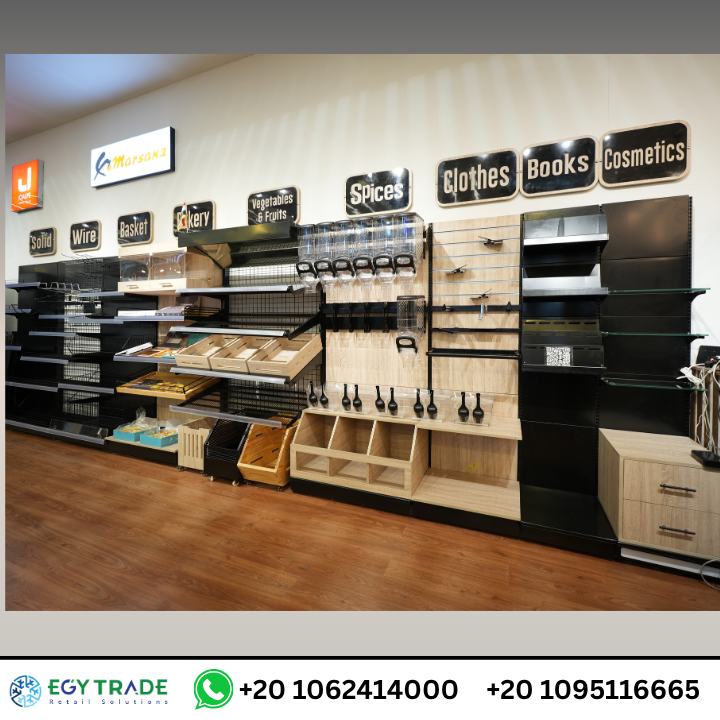 أنصح باستخدام هذا النظام الجداري في المساحات الرئيسية للمتجر، لأنه يوفر تنوعًا كبيرًا في عرض المنتجات دون استهلاك مساحة أرضية إضافية. كما يساعد على رفع جاذبية الأقسام المختلفة مثل الخضار والبهارات والمخبوزات، مما يحسّن تجربة العملاء ويزيد من معدل الدوران.