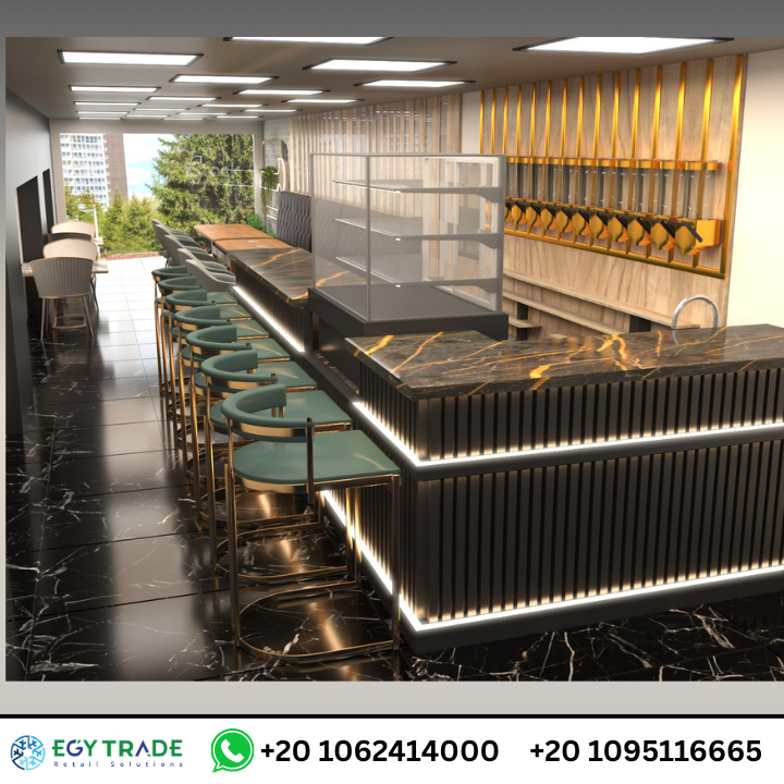 من أقوى عناصر المشروع — بار تقديم كامل وفاخر، ويشمل: