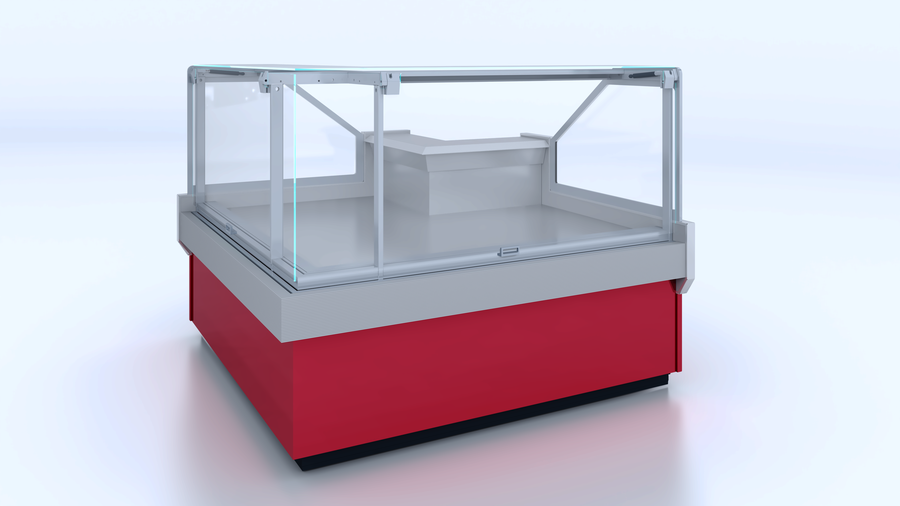 النوع: ثلاجة عرض ركنية بتصميم مربع وزجاج مستقيم
