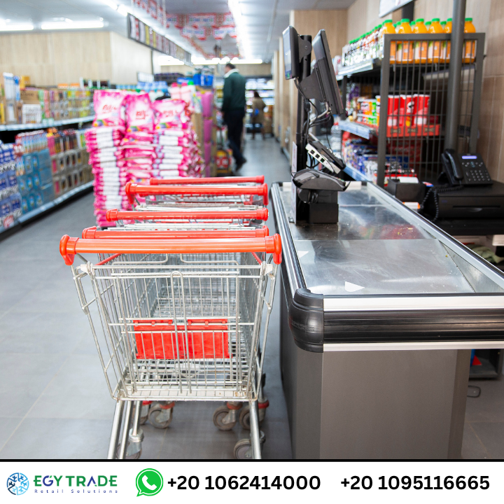 تصميم هذه المنطقة يأتي ضمن أعمال شركة تجهيز سوبر ماركت متكاملة ويُعد جزءًا أساسيًا من مراحل تخطيط هايبر ماركت وعمليات تصميم سوبر ماركت كامل لضمان تجربة دفع سريعة ومريحة.