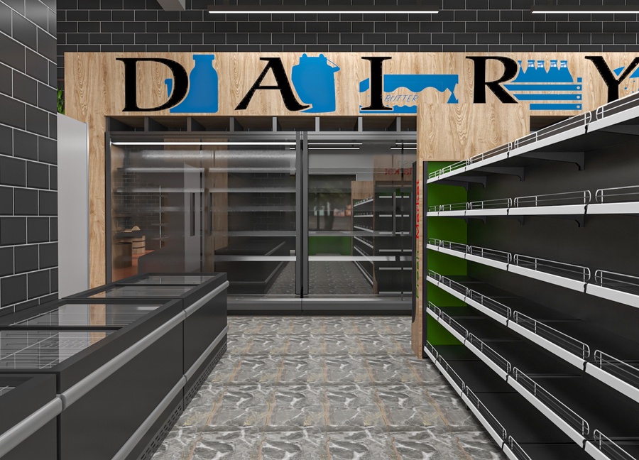 كما يبرز التصميم خبرة إيجي تريد في تنفيذ تجهيزات السوبر ماركت والمحال التجارية بتوازن بين العملية والجمال