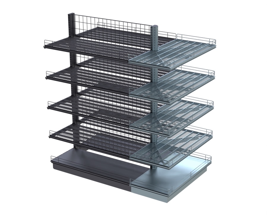 يأتي بتصميم شبكي مزدوج يتيح عرض المنتجات من الجهتين، مما يجعله مثاليًا للممرات الرئيسية في المتاجر الكبيرة والمتوسطة