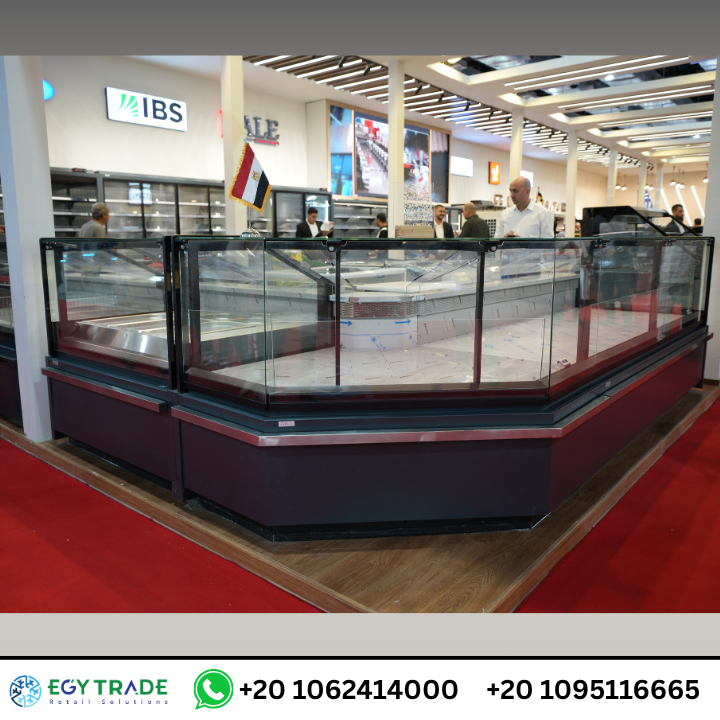 - التصميم: تصميم ركني مقطعي (Corner Unit) مع زجاج محيط لتعزيز رؤية المنتجات.