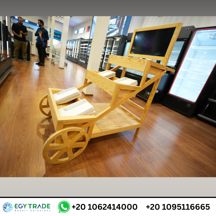 تساهم عربات العرض الخشبية في إبراز المنتجات الخفيفة بشكل أنيق، وتزيد من احتمالات الشراء لأنها تضع المنتجات في مستوى رؤية مباشر، مما يرفع كفاءة البيع ويضيف طابعًا راقيًا لمنطقة العرض.