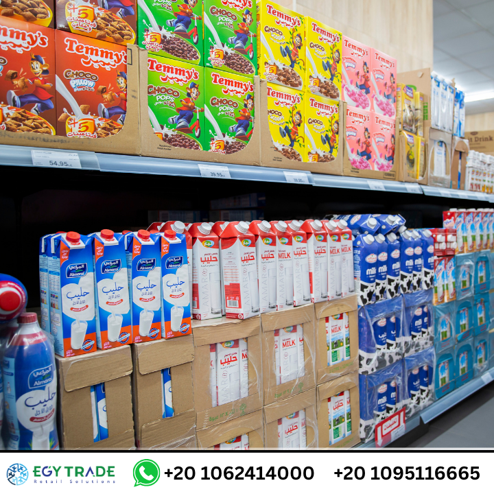 تُعد أرفف العرض الغذائية عنصرًا رئيسيًا داخل مشروع Bim، فهي مسؤولة عن عرض منتجات الحليب والحبوب بطريقة منظمة وجذّابة.