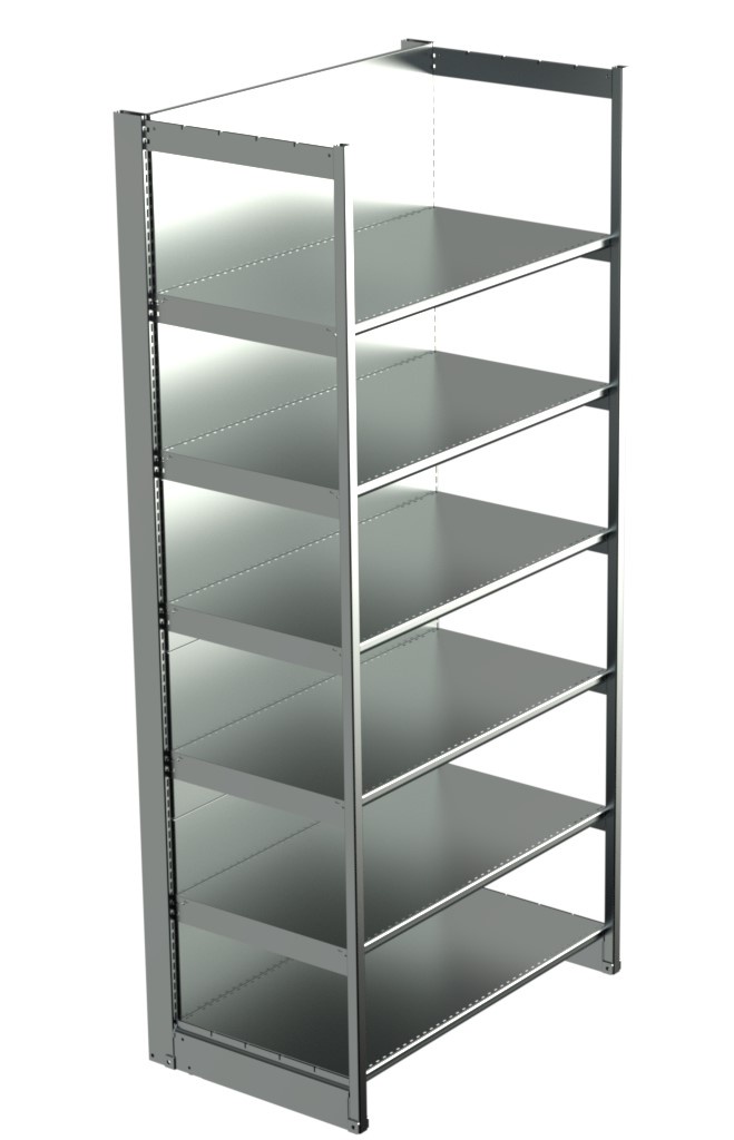 يتميز بتصميم رأسي مكون من سبع طوابق معدنية قوية قادرة على تحمل الأوزان العالية مع إمكانية تعديل ارتفاع الأرفف حسب نوعية المنتجات