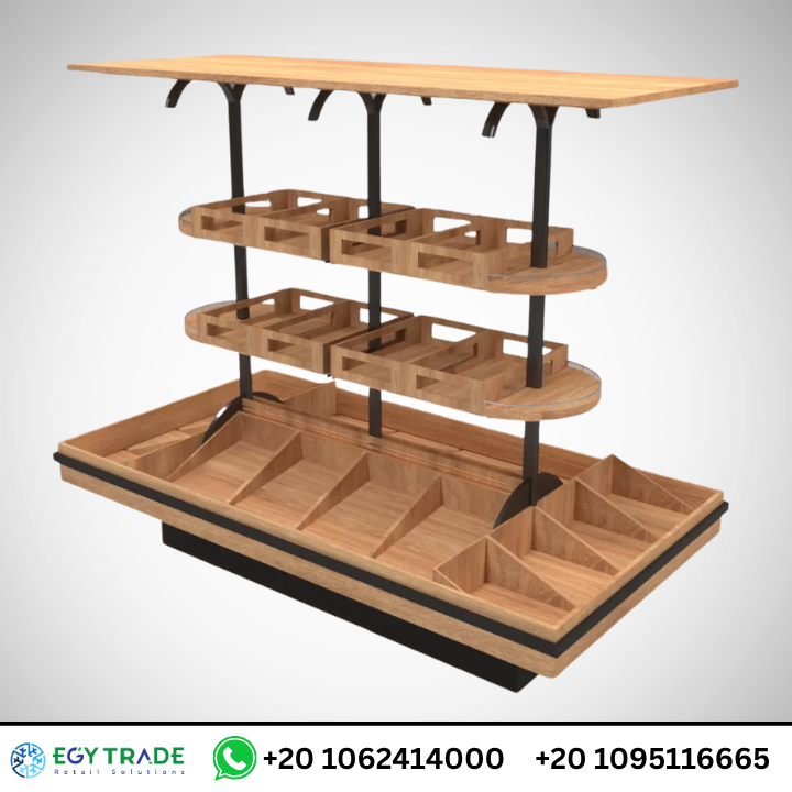 تم تصميم هذه الوحدة لرفع كفاءة عرض الخضار والفاكهة داخل المحلات الصغيرة والمتوسطة، وهي من الحلول الأساسية التي تعتمد عليها مشاريع تجهيز بقالة ميني ماركت بسبب استغلالها الممتاز للمساحة وسهولة استخدامها.