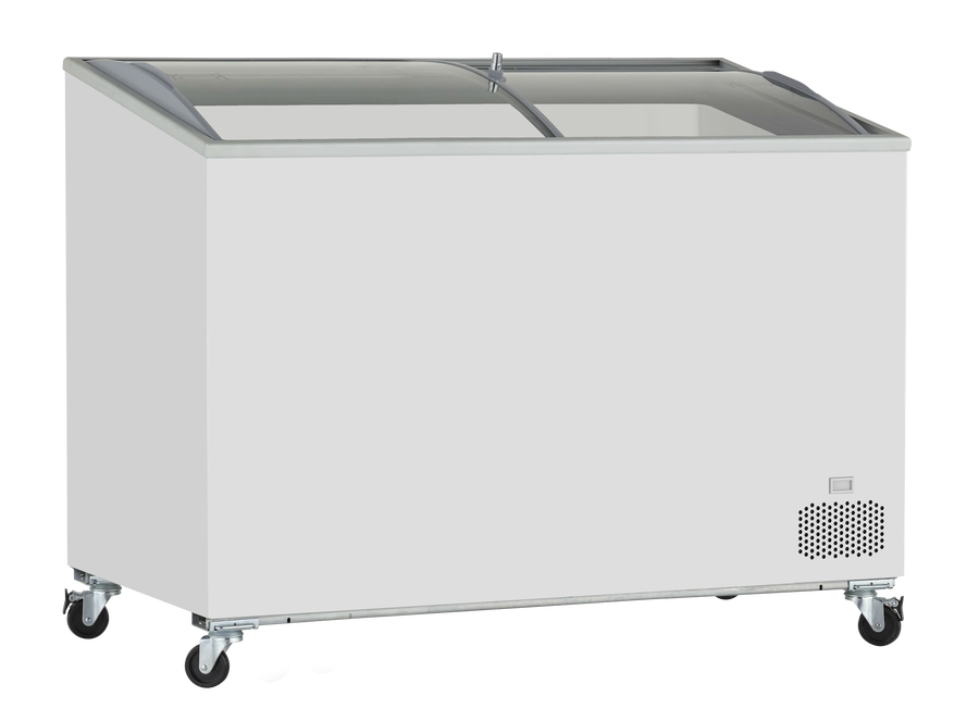 تأتي الثلاجة بغطاء زجاجي منحني منزلق يتيح رؤية واضحة للمنتجات ويقلل من فقدان البرودة عند الفتح، مما يعزز كفاءة استهلاك الطاقة