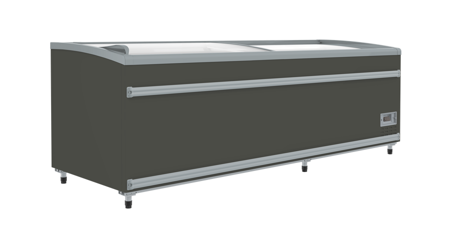 تأتي الثلاجة بغطاء زجاجي منحني شفاف يسهل رؤية المنتجات المجمدة مثل اللحوم، الأسماك، والمثلجات، مما يجعلها مثالية للاستخدام في السوبر ماركت والمتاجر الغذائية