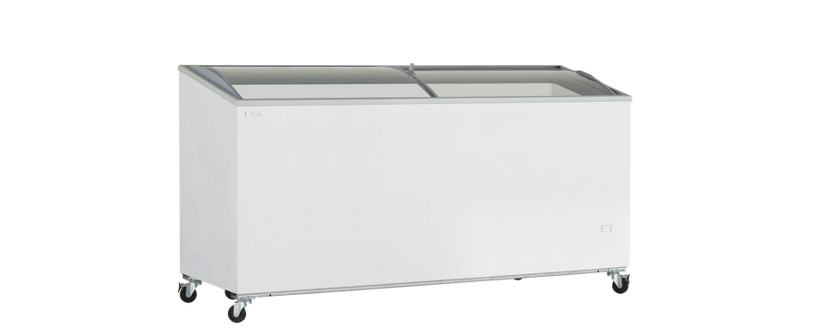 يتميز الفريزر بغطاء زجاجي منزلق مزدوج يتيح رؤية واضحة للمنتجات مع الحفاظ على درجة حرارة منخفضة وثابتة