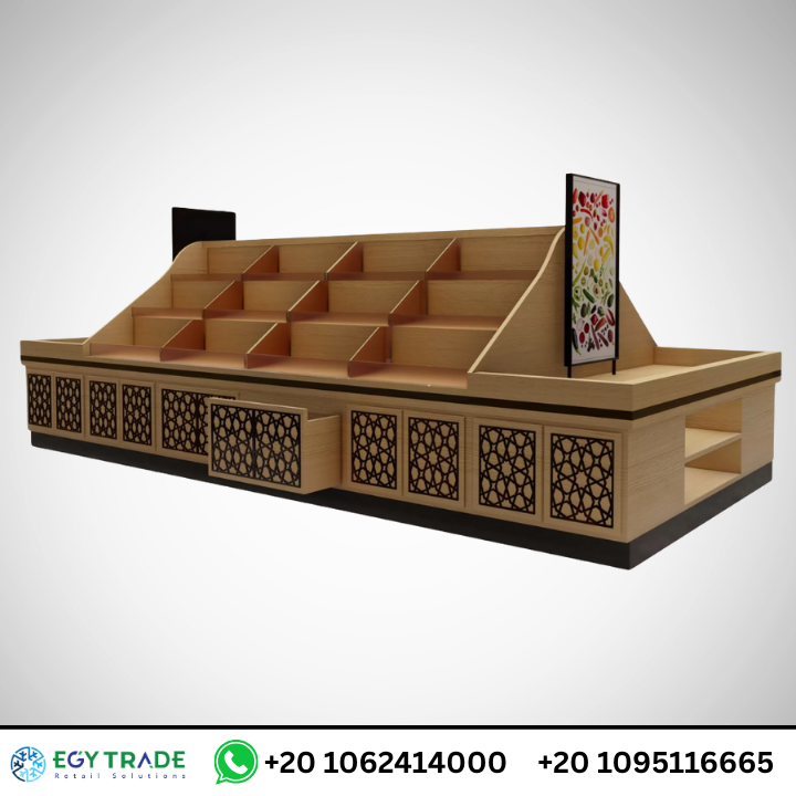 طاولة عرض خشبية متعددة المستويات – حل مثالي لـ معدات عرض عروض اليوم الواحد ضمن خدمات تجهيز محلات السوبر ماركت | إيجي تريد